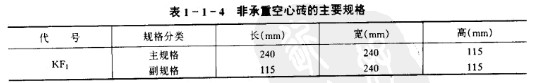 非承重空心磚的主要規格有兩種,見表1一1一4。