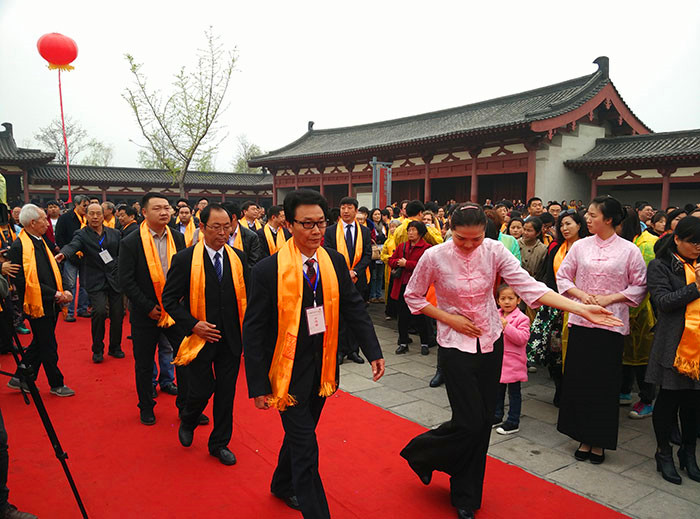 鞏義籍、原國務院副總理吳桂賢宣布祭典開始,主祭人神情肅穆,儀態莊重的分別完成了凈手、奠帛、誦讀祭文等環節,童聲誦讀的祭文,余音裊裊,猶如天籟,磬入心脾;隨后,朝圣隊伍和各界群眾在音樂的伴奏下向詩人堂三鞠躬,以此告慰詩人在天之靈。