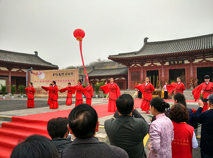 4月5日清明節當天上午9時許,在清明時節的紛紛細雨之中,杜甫國際詩歌節——第三屆清明節杜甫故里祭拜“詩圣”大典在鞏義境內杜甫故里拉開帷幕。來自海內外的近百位詩人、學者等各方來賓云集“詩圣”故園在此一起祭拜“詩圣”。本屆詩歌節邀請了近百位海內外知名詩人參加,其中有臺灣詩人鄭愁予;大陸詩人舒婷、王家新、耿占春以及韓國詩人黃東奎等。