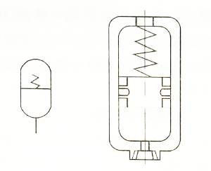 (1)利用彈簧的壓縮和伸長來儲存、釋放壓力能 (2)結構簡單,但容量小 (3)供小容量、低壓(p≤1~1.2MPa)回路用,不適用于高壓或高頻的工作場合 |