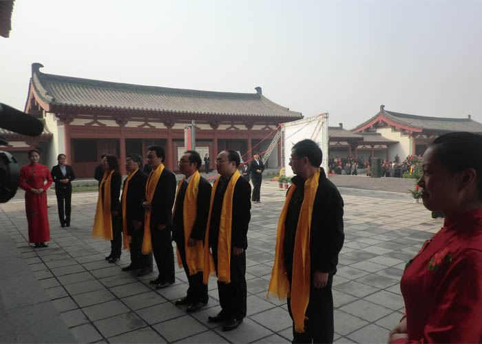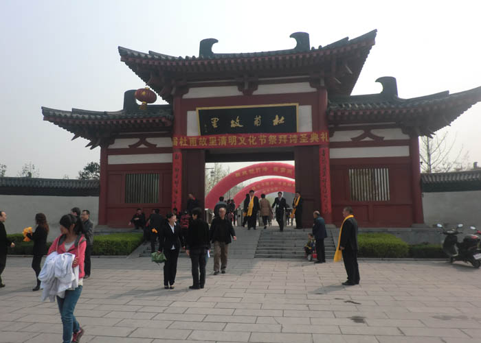 2013年4月3日,上午10時(shí),莊嚴(yán)肅立的祭祀隊(duì)伍在杜甫故里靜靜佇立,在主持人的引領(lǐng)下,主祭人緩緩步入祭祀主會場。在行過凈手之后,首屆杜甫故里清明祭拜“詩圣杜甫活動(dòng)由此拉開序幕。主祭人神情肅穆,儀態(tài)莊重的分別完成了凈手、奠帛、誦讀祭文等環(huán)節(jié),童聲誦讀的祭文,余音裊裊,猶如天籟,磬入心脾;隨后,朝圣隊(duì)伍和各界群眾在音樂的伴奏下向詩人堂三鞠躬,以此告慰詩人在天,整個(gè)祭祀活動(dòng)達(dá)到了高潮。這一刻,種種情愫穿越時(shí)空,華夏子孫與我們自己的精神大師心照神交,我們心有所依,情有所傍,文化傳承的責(zé)任與擔(dān)當(dāng)永世不忘。